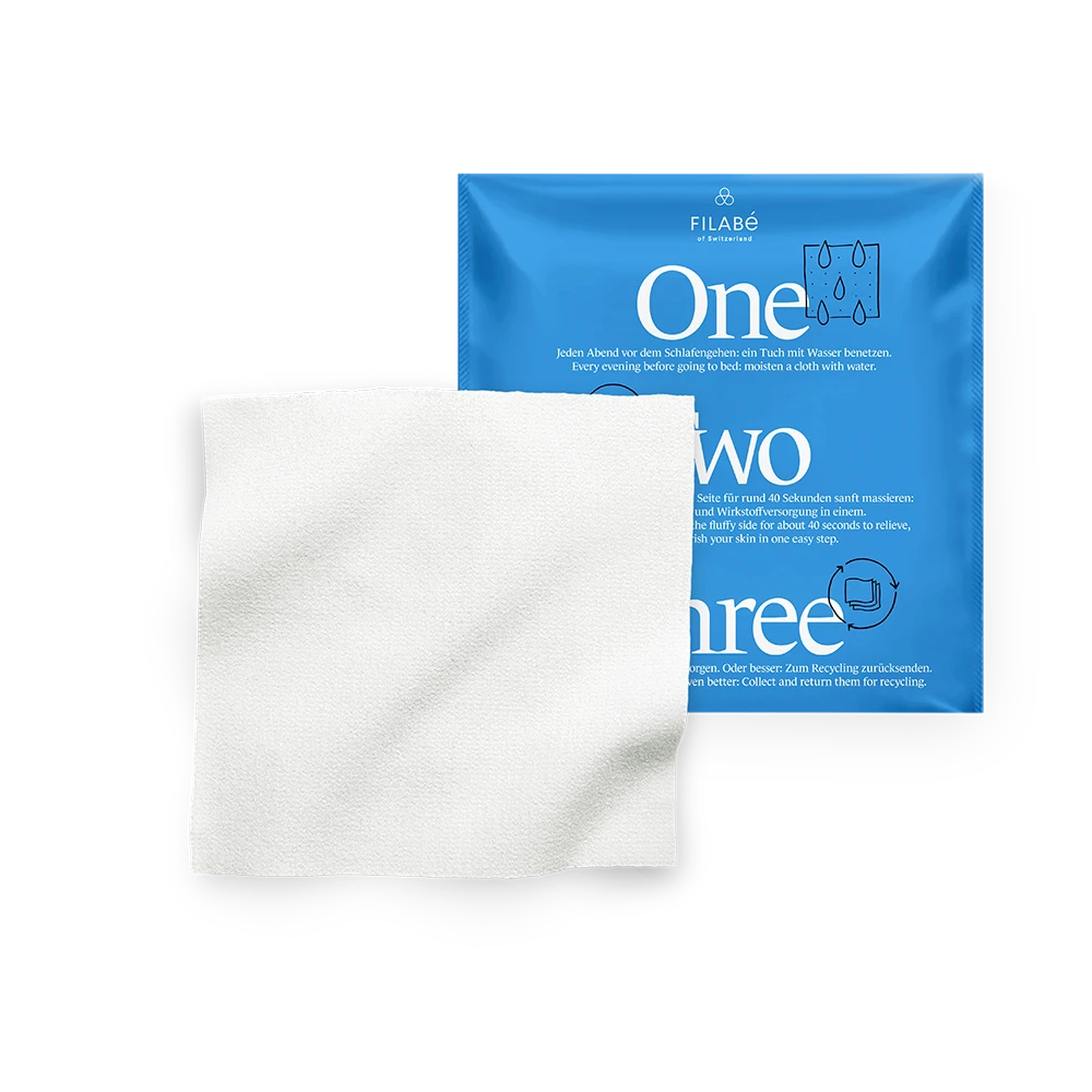 Use Filabé SkinRepair before going to sleep: Moisten the cloth with water to activate the active ingredients. Make it evenly damp. Do not wring it out.
