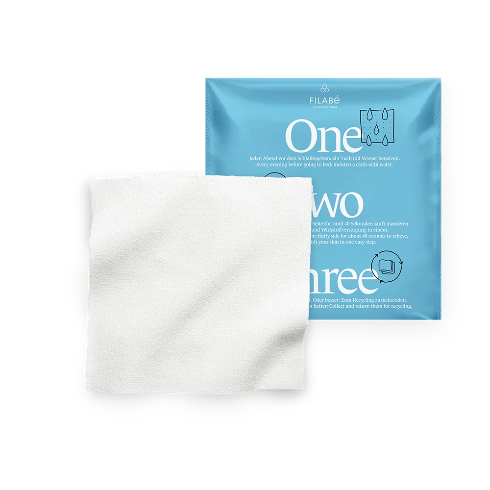 Use Filabé SkinRepair before going to sleep: Moisten the cloth with water to activate the active ingredients. Make it evenly damp. Do not wring it out.