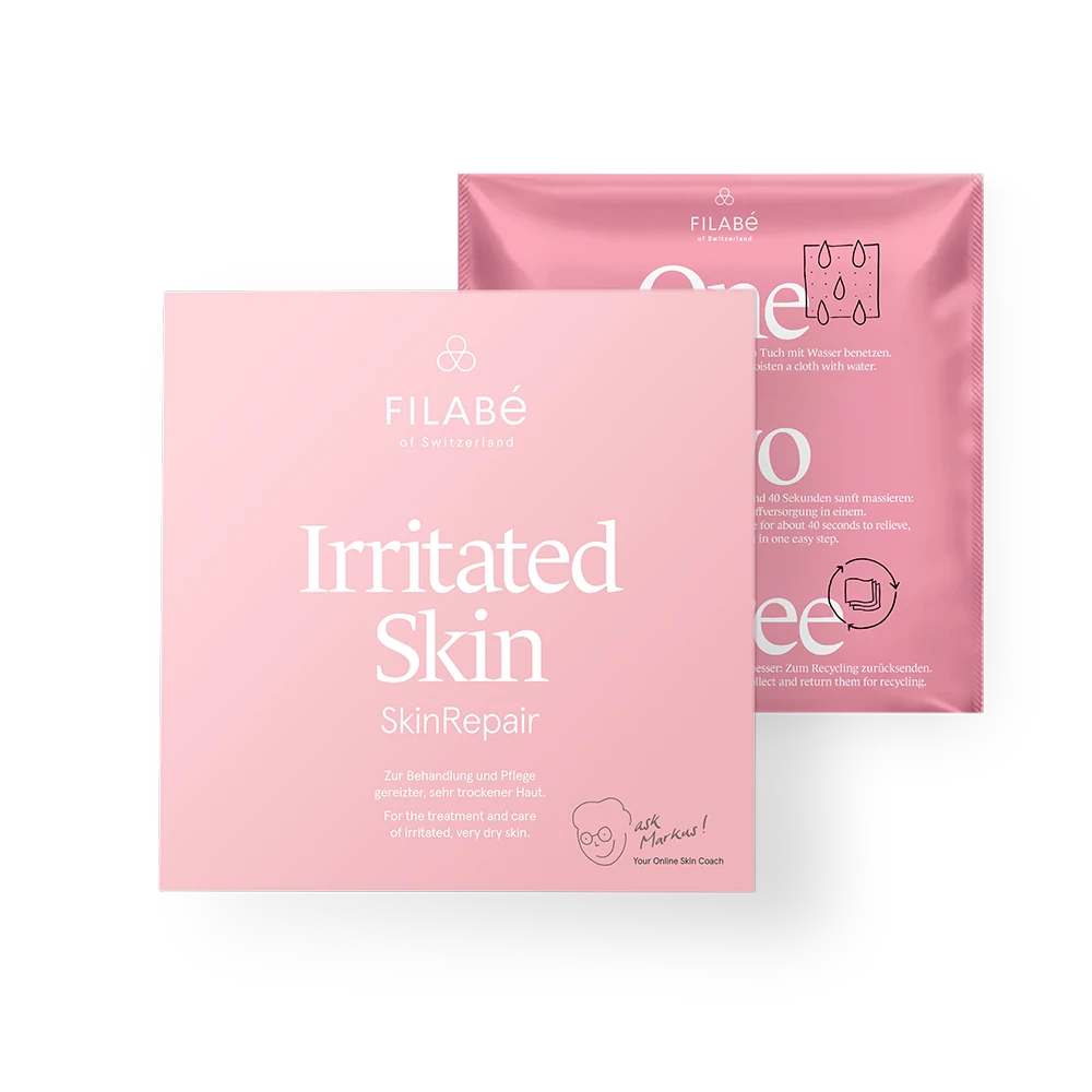 Irritated Skin contains select active ingredients matched to your skin's needs. These are activated when applied with water. Free of additives. All Filabé products in the SkinRepair range contain soy-based lecithin — lecithin is not only caring itself but promotes the absorption of active ingredients by the skin.