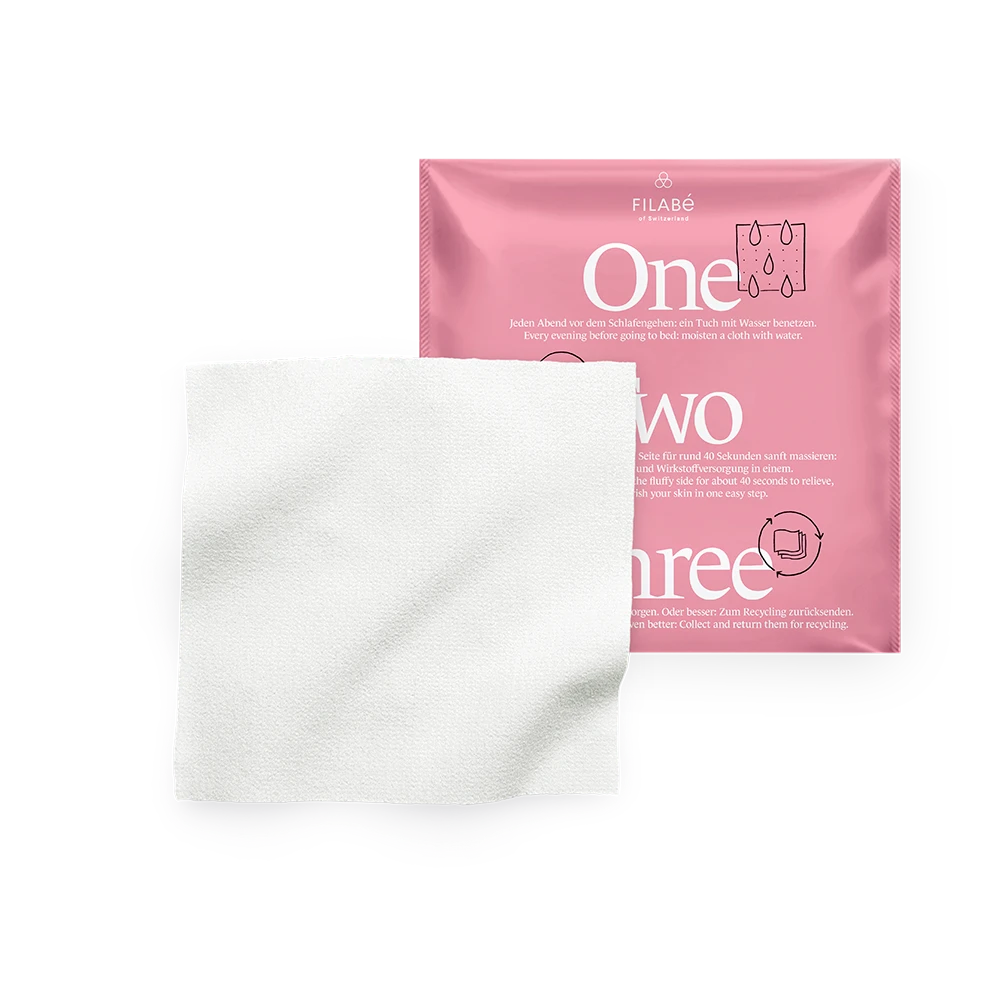 Use Filabé SkinRepair before going to sleep: Moisten the cloth with water to activate the active ingredients. Make it evenly damp. Do not wring it out.
