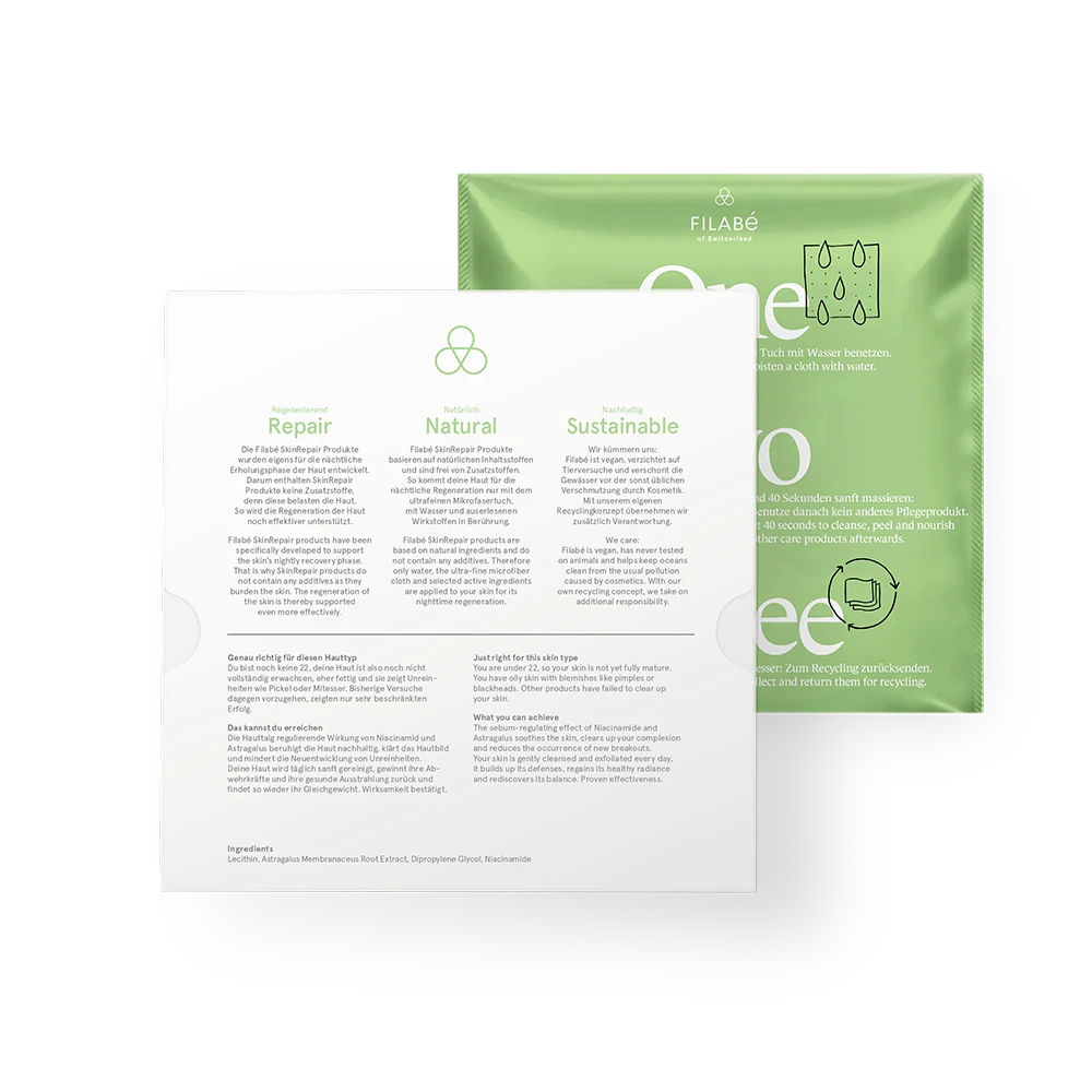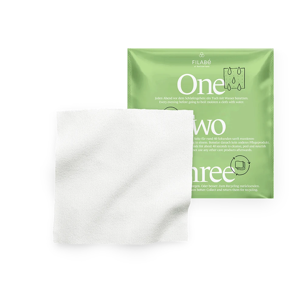 Use Filabé SkinRepair before going to sleep: Moisten the cloth with water to activate the active ingredients. Make it evenly damp. Do not wring it out.